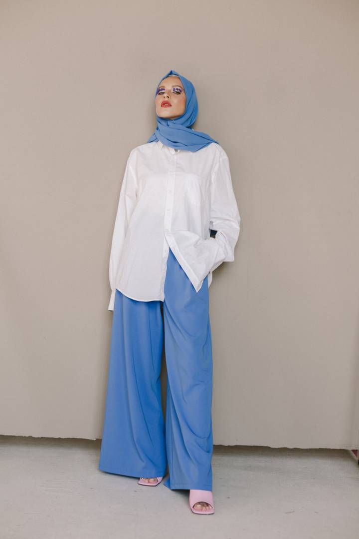 Брюки-палаццо из качественной костюмной ткани. Прекрасно скрывают силуэт ног благодаря широким штанинам. Подходят как для создания полностью классического образа, так и для сочетания с худи в стиле casual.