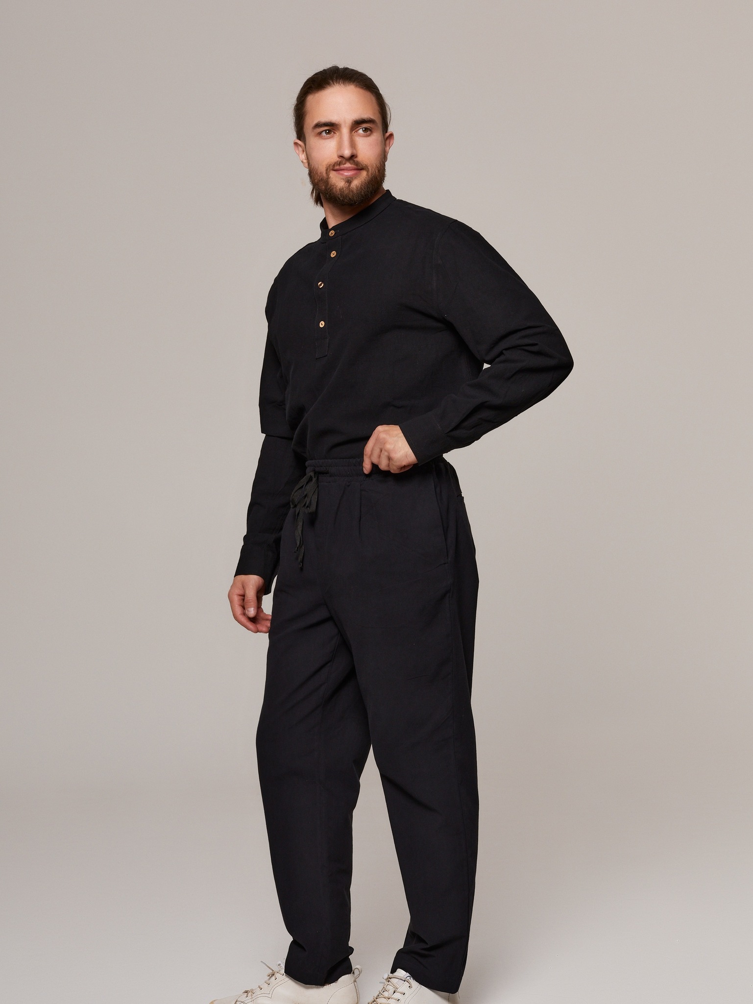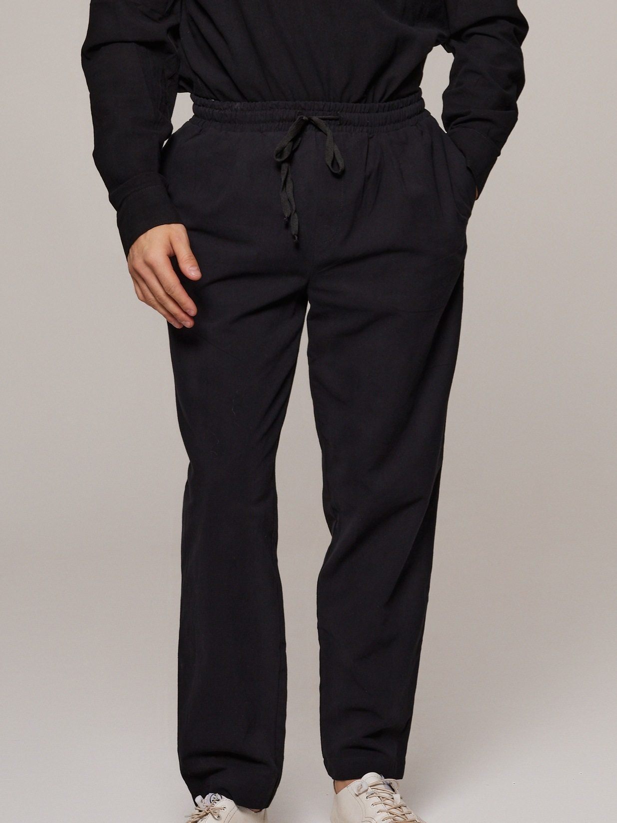 Благодаря свободному крою, брюки обеспечивают комфорт при любых телодвижениях. Модель одинаково хорошо смотрится как на мужчинах, так и на подростках, создавая модный и актуальный образ. Брюки на резинке с завязками, по бокам прорезные карманы. Состав ткани-100% хлопок (котон). Уход за изделием: стирать изнанкой наружу; деликатный отжим.