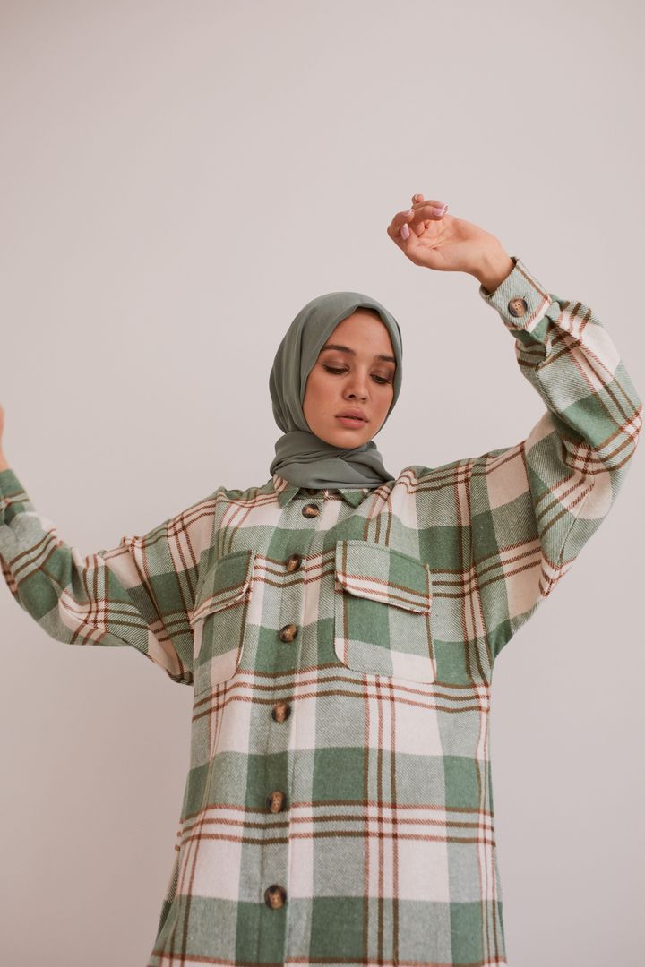 Длинная рубашка в клетку «Thaw», зеленый