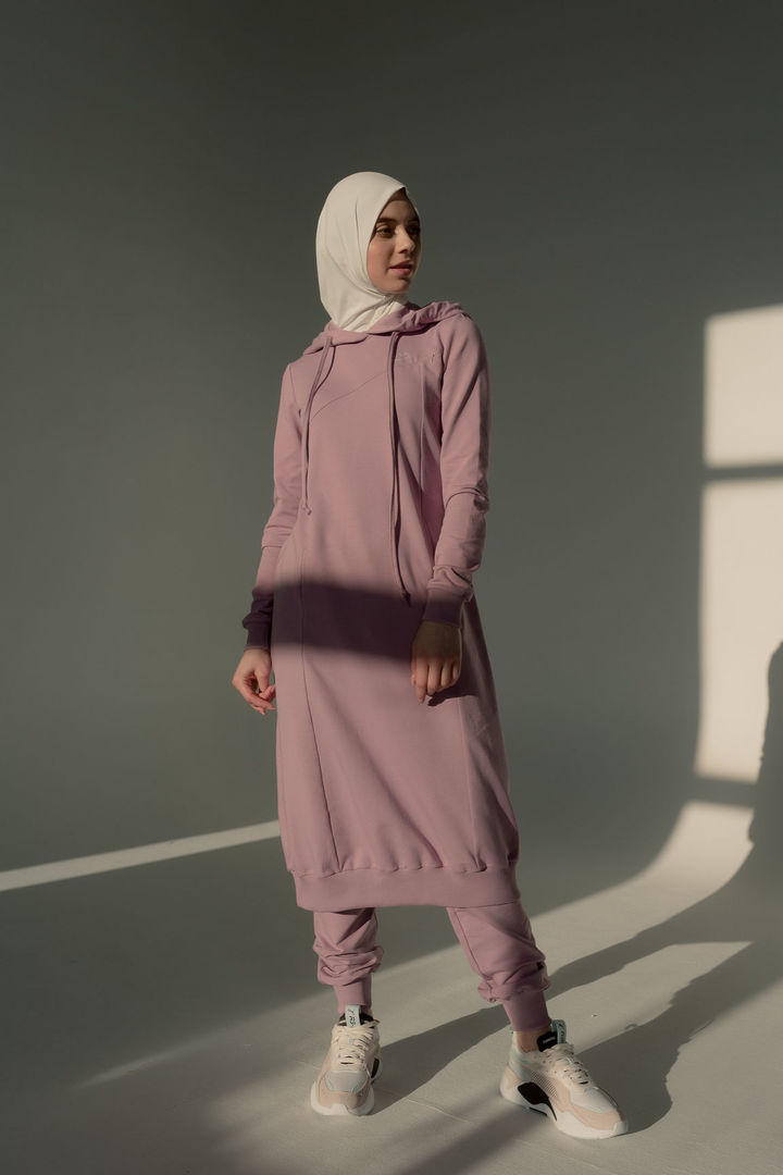 Очень удобный спортивный костюм из трикотажа, подойдет как для занятий спортом, так и для прогулок. В состав костюма входят туника с карманами и с капюшоном на подкладе, брюки на резинке с манжетами снизу. Также костюм будет удобен для молодых мам - на тунике имеется замочек для кормления. Не садится, не образует катышки, не прихотлив в уходе.