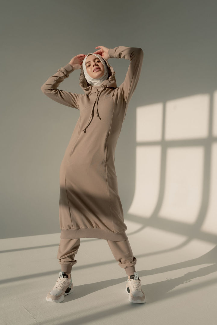 Очень удобный спортивный костюм из трикотажа, подойдет как для занятий спортом, так и для прогулок. В состав костюма входят туника с карманами и с капюшоном на подкладе, брюки на резинке с манжетами снизу. Также костюм будет удобен для молодых мам - на тунике имеется замочек для кормления. Не садится, не образует катышки, не прихотлив в уходе.
