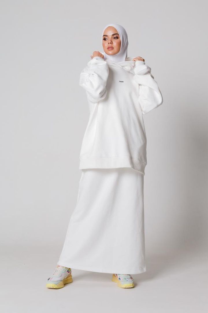 Базовая прямая юбка из футера трехнитка. Модель на резинке расширяется к низу для удобного шага. Подходит для прогулок и casual образов.