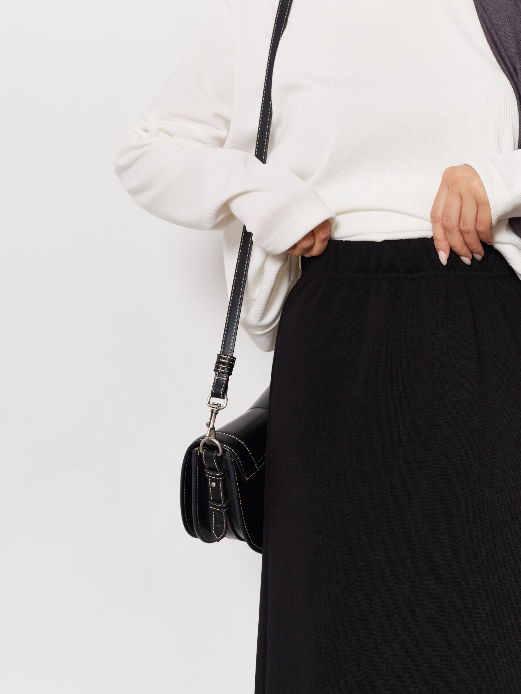 Прямая юбка из плотной хлопковый ткани-трехнитки прекрасно подойдет на любую погоду. Конструкция изделия обеспечит комфортную посадку, подойдет ко всем типам фигур, на талии собрана на резинку, не сковывает движение.